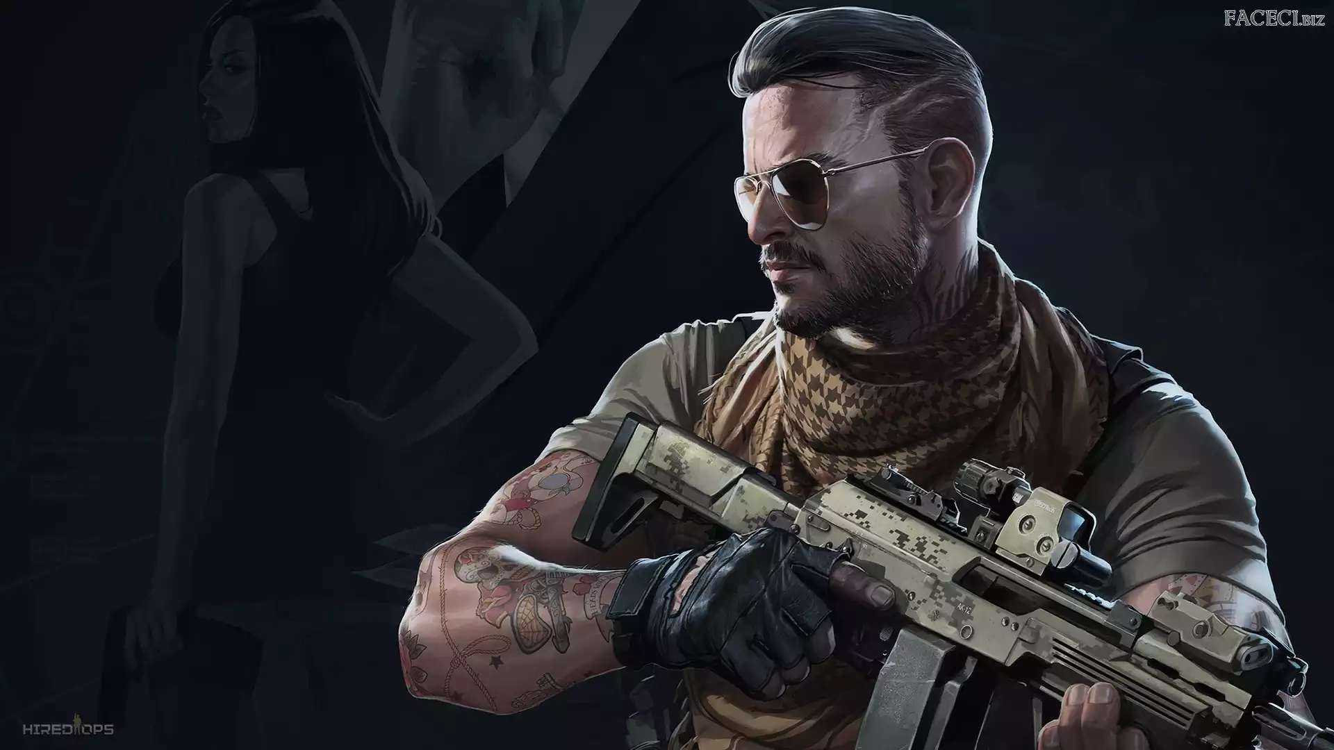 Grafika, Żołnierz, Mężczyzna, Okulary, Broń, Karabin - faceci.biz