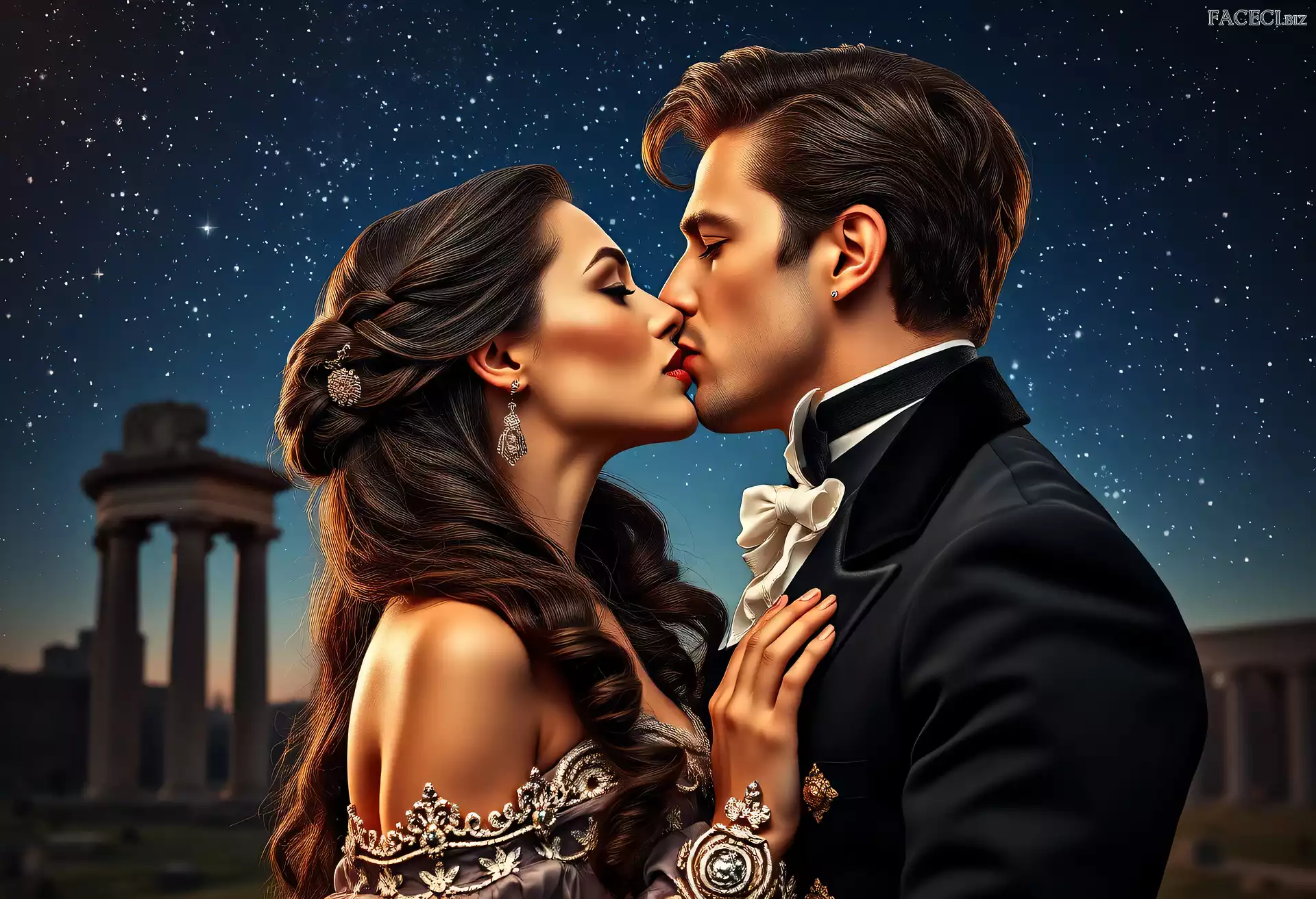 Miłość, Kobieta, Mężczyzna, Pocałunek, Gwiazdy, Zakochani, Niebo - faceci.biz